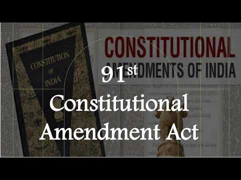 संविधान में 91वां संशोधन 7 जुलाई 2004 को लागू हुआ था। संशोधन के अनुसार, केंद्र और राज्यों में मंत्रिस्तरीय परिषदों (मिनिस्टीरियल काउंसिल) की संख्या लोकसभा या राज्य विधानसभाओं के सदस्यों की संख्या के 15% से अधिक नहीं हो सकती है।