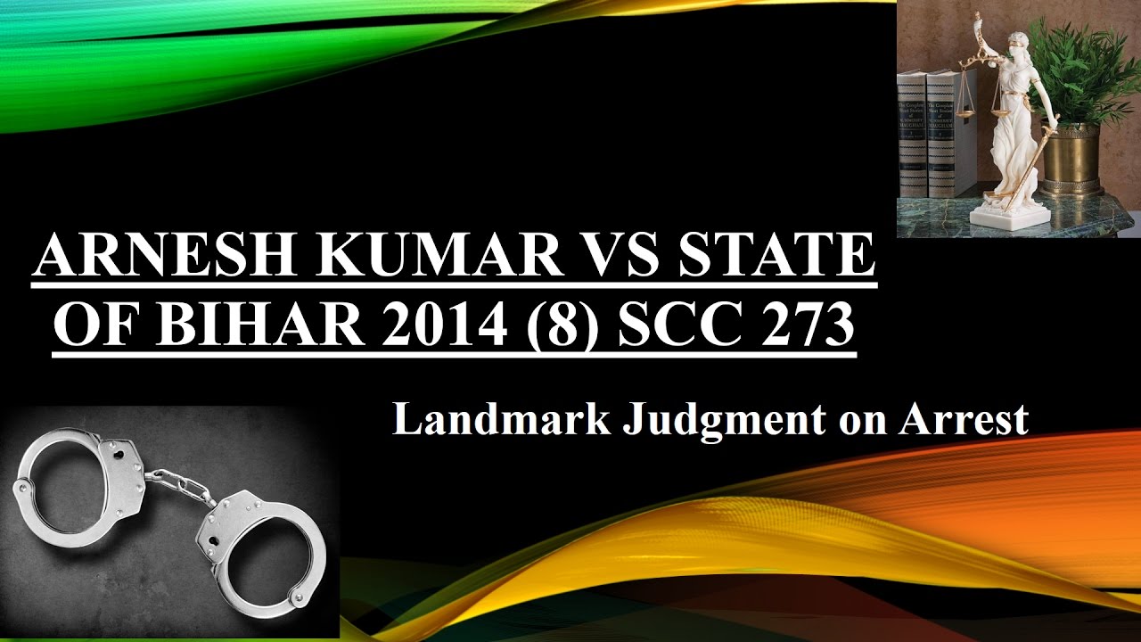 अर्नेश कुमार बनाम बिहार राज्य (2014) मामला संवैधानिक और आपराधिक मामलों के लिए एक महत्वपूर्ण निर्णय है। न्यायालय ने असंज्ञेय अपराध में भी मनमानी गिरफ्तारी के खतरे को स्वीकार किया है। इसके अलावा, अदालत ने अपने पतियों या उनके रिश्तेदारों से बदला लेने के लिए पत्नियों द्वारा भारतीय दंड संहिता की धारा 498A और दहेज निषेध अधिनियम की धारा 4 के दुरुपयोग का विश्लेषण किया है। न्यायालय ने इन धाराओं के दुरुपयोग की संभावना को देखते हुए कहा कि दिशानिर्देश निर्धारित करना आवश्यक है। यद्यपि यह मामला घरेलू हिंसा के अपराध से संबंधित था, फिर भी न्यायालय ने सात वर्ष या उससे कम कारावास से दंडनीय अपराधों के अभियुक्त व्यक्तियों को गिरफ्तार करने और हिरासत में रखने के लिए सार्वभौमिक दिशानिर्देश निर्धारित किए है। अदालत ने कहा कि पुलिस अधिकारियों को सीआरपीसी की धारा 41A के अनुसार गिरफ्तारी के कारणों को निर्दिष्ट करते हुए एक जाँच सूची तैयार करनी होगी। इसके अलावा, मजिस्ट्रेटों को पुलिस द्वारा हिरासत के लिए दिए गए आवेदन के साथ दिए गए कारणों का उचित ढंग से अध्ययन करना होगा तथा उसे अनुमति देने या खारिज करने के लिए उचित कारण भी बताना होगा। पुलिस या मजिस्ट्रेट द्वारा उपरोक्त दिशा-निर्देशों का पालन न करने पर उनके विरुद्ध सख्त विभागीय कार्रवाई की जाएगी।