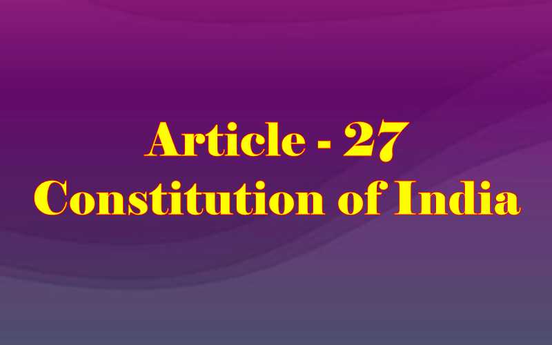 भारतीय संविधान के तीसरे भाग में अनुच्छेद 27 एक मौलिक अधिकार है। यह ‘धर्म की स्वतंत्रता’ शीर्षक के अंतर्गत सूचीबद्ध है। यह नागरिकों को राज्य द्वारा करों का भुगतान करने के लिए मजबूर नहीं होने का मौलिक अधिकार देता है, जो किसी विशेष धर्म या धार्मिक संप्रदाय (डिनॉमिनेशन) को बढ़ावा देगा। यह अधिकार एक तरह से संविधान के अनुच्छेद 25 के तहत ‘अंतरात्मा की स्वतंत्रता’ की रक्षा करता है। इसमें चार तत्व शामिल हैं, अर्थात, – व्यक्ति, कर,पदोन्नति (प्रमोशन)या किसी धर्म या धार्मिक संप्रदाय का रखरखाव।