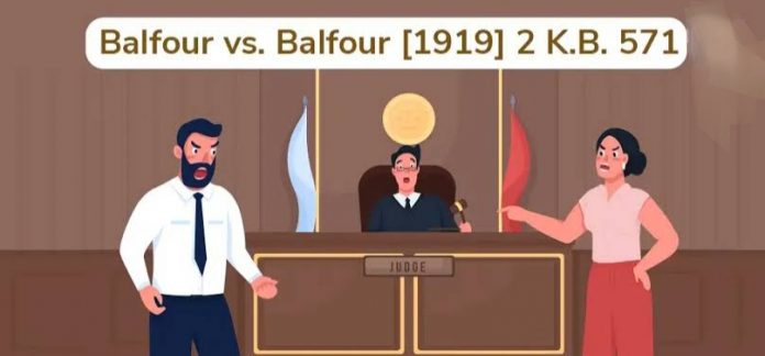 बाल्फोर बनाम बाल्फोर का वर्तमान मामला “कानूनी संबंध बनाने के इरादे” के सिद्धांत पर ऐतिहासिक निर्णय है।