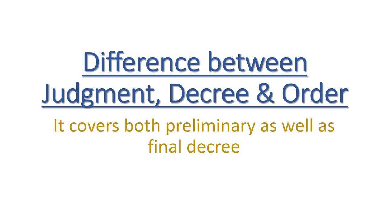 उपरोक्त चर्चा से, अब एक डिक्री, निर्णय और एक आदेश के बीच स्पष्ट अंतर की रेखा खींची जा सकती है। एक डिक्री की अनिवार्यता यह है कि विवाद में पक्षों के अधिकारों से निपटने के लिए एक निर्णय होना चाहिए, जो निर्णायक रूप से निर्धारित करता है, और इसकी औपचारिक अभिव्यक्ति होनी चाहिए। हालांकि, एक आदेश विशेष रूप से पक्ष के अधिकारों का निर्धारण कर भी सकता है या नहीं भी कर सकता है। जहां तक निर्णय का संबंध है, यह न्यायालय का अंतिम निर्णय होता है, जिसे औपचारिक रूप से सुनाया जाता है। 1976 में संहिता के संशोधन ने सुनवाई पूरी होने की तारीख से एक समय प्रतिबंध लगाया जिसके भीतर निर्णय सुनाया जाना चाहिए।