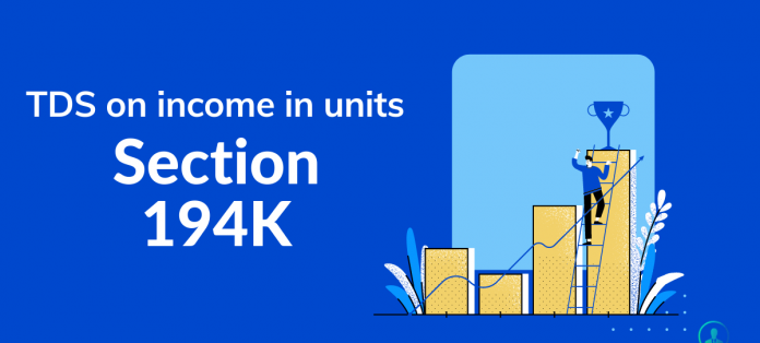 आयकर अधिनियम, 1961 की धारा 194K में यह प्रावधान है कि जब अधिनियम की धारा 10 के खंड (23-D) में उल्लिखित म्यूचुअल फंड की इकाइयों या “निर्दिष्ट उपक्रम” के “प्रशासक” से इकाइयों या “निर्दिष्ट कंपनी” से इकाइयों के संबंध में किसी निवासी को कोई आय का भुगतान किया जाना है, तो भुगतान का प्रबंधन करने वाला व्यक्ति उस आय को आदाता के खाते में जमा करते समय या नकद में भुगतान के समय या चेक या ड्राफ्ट जारी करने के माध्यम से उस आय से दस प्रतिशत की दर से आयकर काट लेगा।